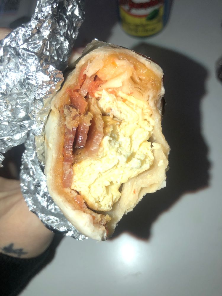 - Worth the Hangover: A scrumptious mix of overeasy eggs, crispy tots, spicy maple mayo, and crumbled sage sausage, all wrapped in a flour tortilla.
